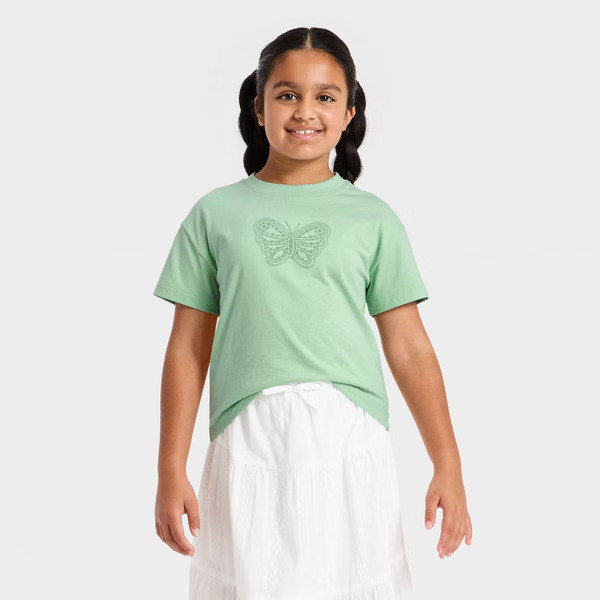 Cat & Jack Girls' Short Sleeve Butterfly T-Shirt, M - Dusty Mint