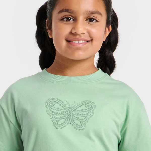 Cat & Jack Girls' Short Sleeve Butterfly T-Shirt, L - Dusty Mint