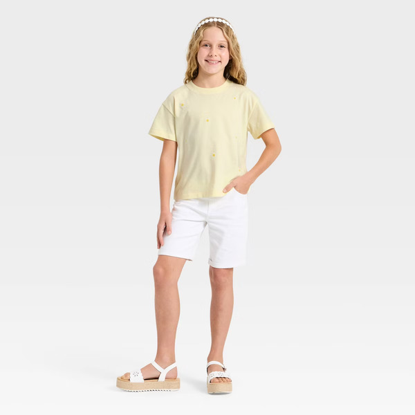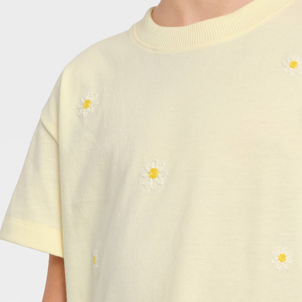 Cat & Jack Girls' Short Sleeve Daisy T-Shirt, XL - Pale Yellow