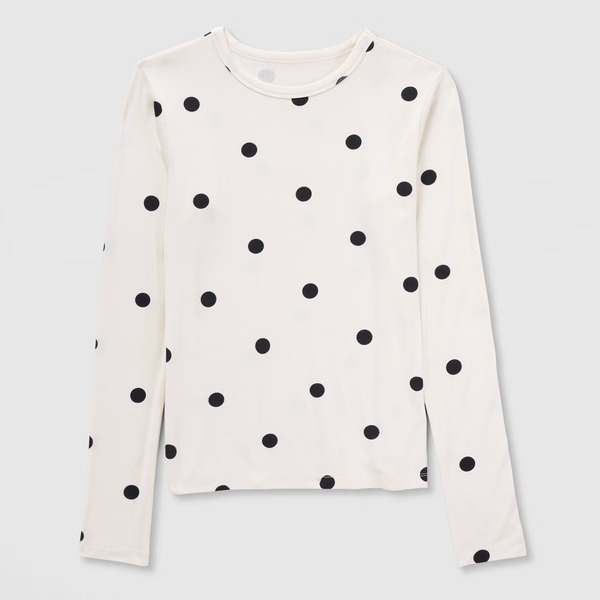 A New Day Women's Long Sleeve Fitted Jersey T-Shirt, L - Black/White Dot