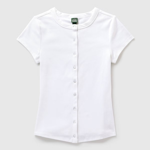 Wild Fable Women's Cap Sleeve Round Neck Button-Down Shirt, XL - White
