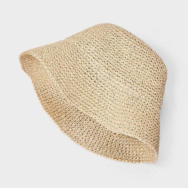 Universal Thread Straw Crochet Bucket Hat, L/XL - Natural