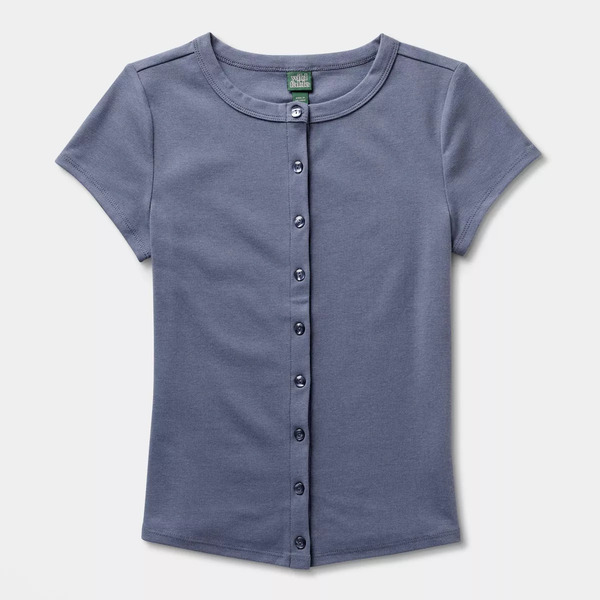 Wild Fable Women's Cap Sleeve Round Neck Button-Down Shirt, XL - Dark Blue