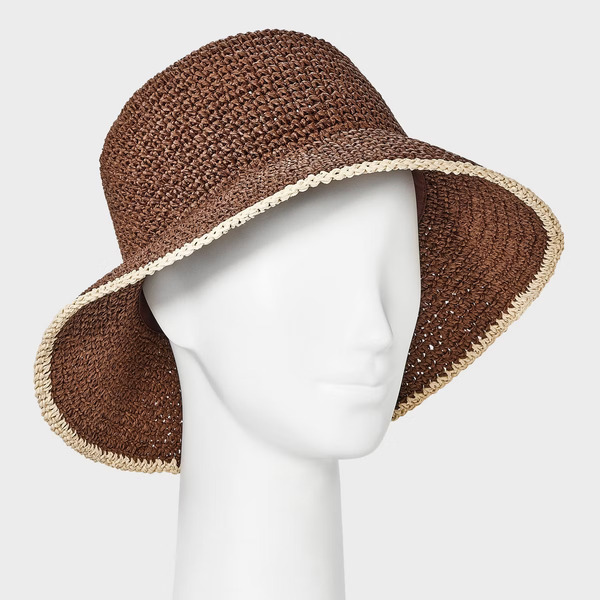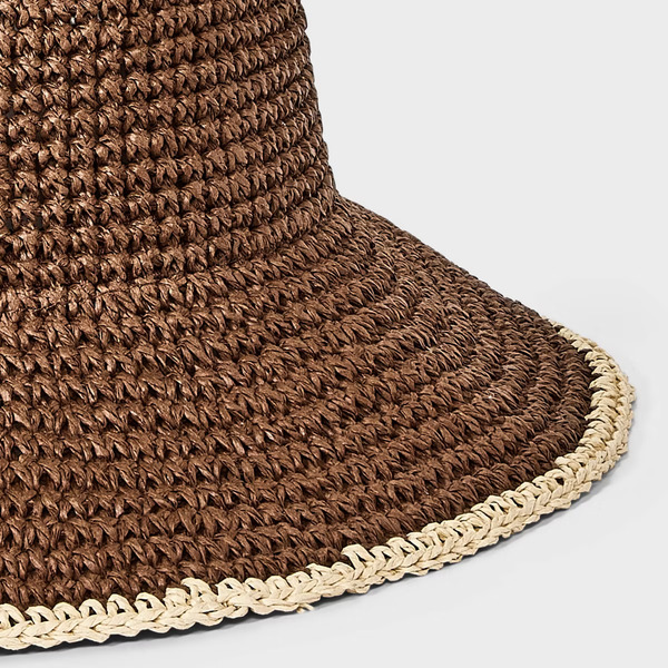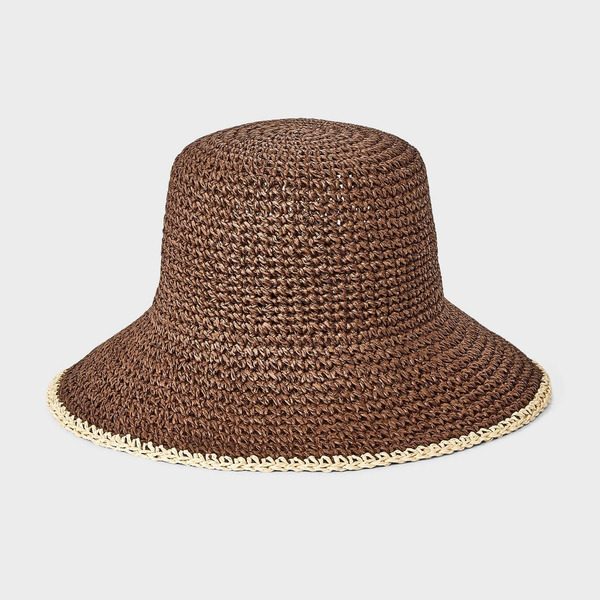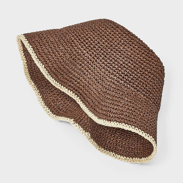Universal Thread Straw Crochet Bucket Hat, L/XL - Dark Brown