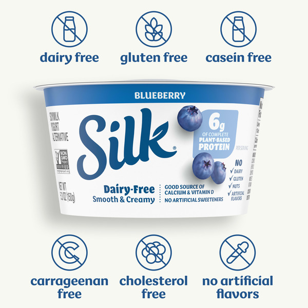 Silk Blueberry Dairy Free, Soy Milk Yogurt Alternative, Smooth and Creamy Plant Based Yogurt with 6 Grams of Protein Per Serving, 5.3 OZ Container