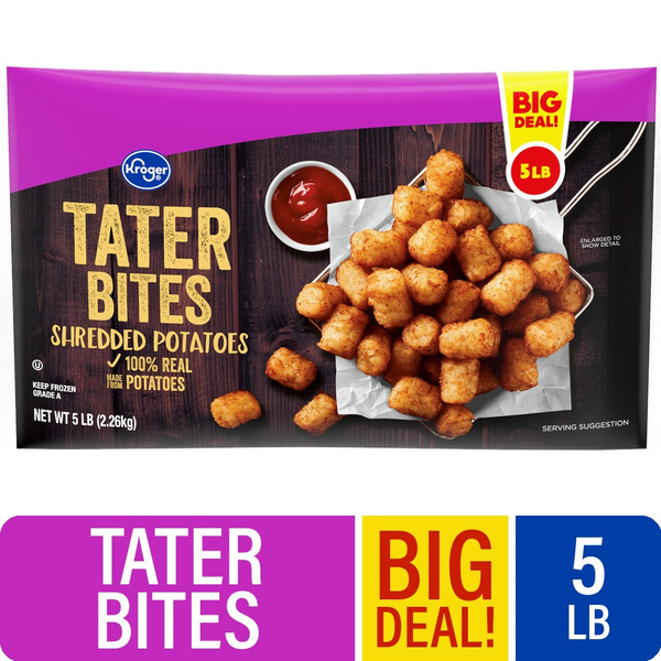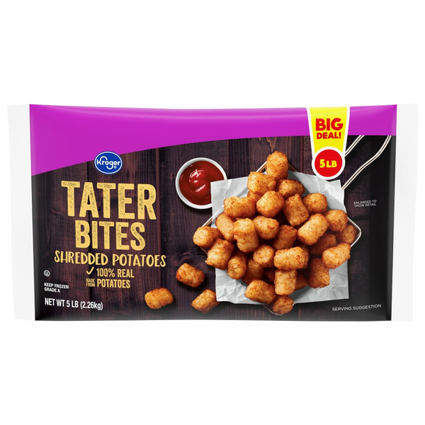 Front of Frozen Appetizers & Sides Kroger Tater Bites Shredded Potatoes