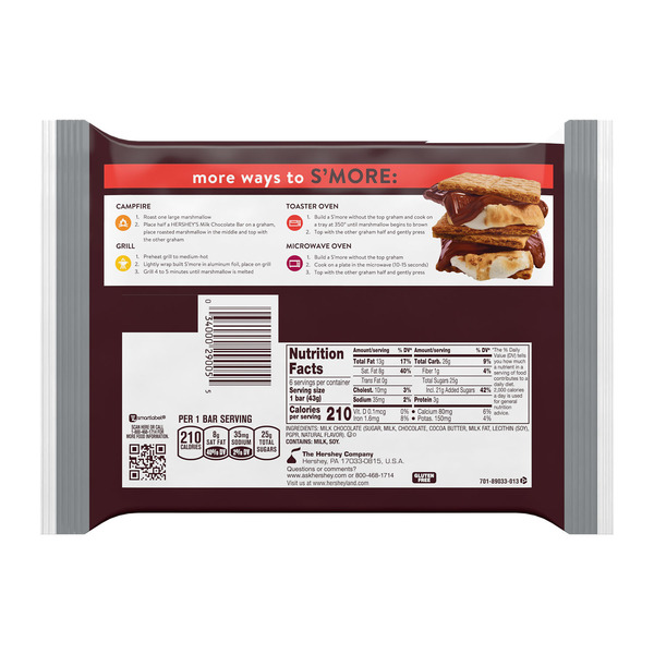 Front of Candy & Chocolate Hershey's Milk Chocolate Candy Bars, 1.55 oz (6 Count)