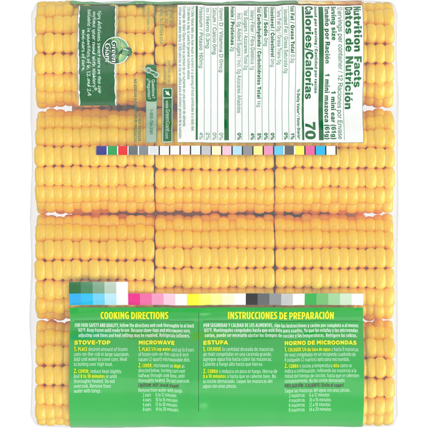 Front of Frozen Produce Green Giant Corn on the Cob Mini Ears
