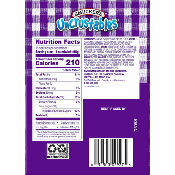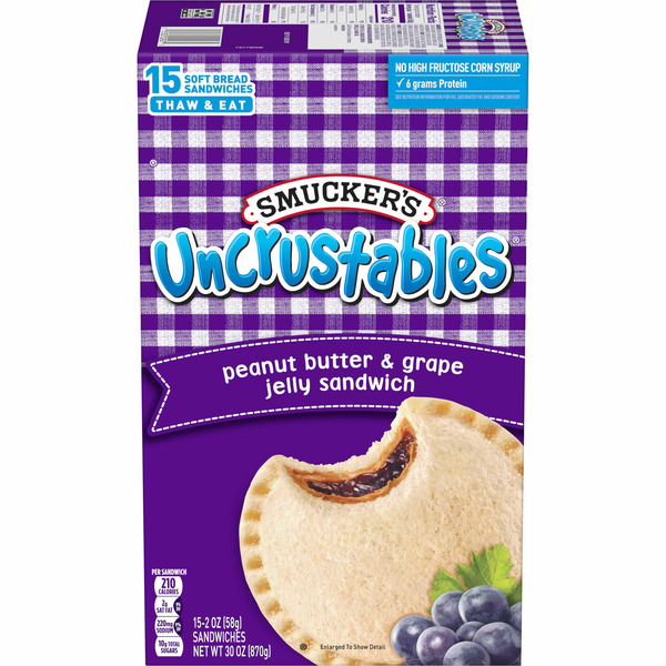 Smucker's Uncrustables Peanut Butter & Grape Jelly Sandwiches, Frozen