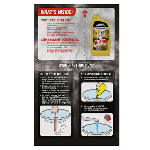 Drano Snake Plus Drain Cleaning Kit Tool + Gel System, Commercial Line