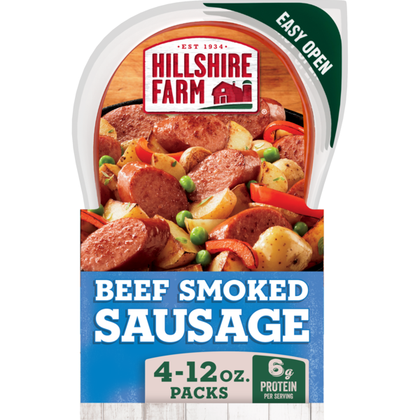 Front of Hot Dogs, Bacon & Sausage Hillshire Farm Beef Smoked Sausage, 48 oz. Bundle Pack