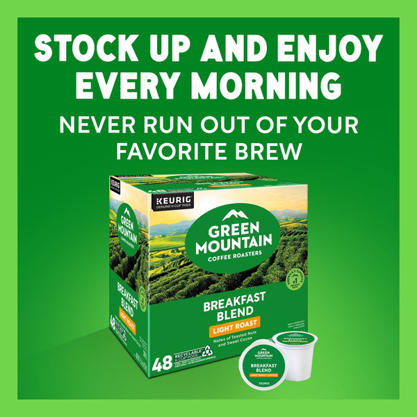 Front of Coffee Green Mountain Coffee Roasters Green Mountain Coffee Roasters Breakfast Blend Light Roast K-Cup Coffee Pods