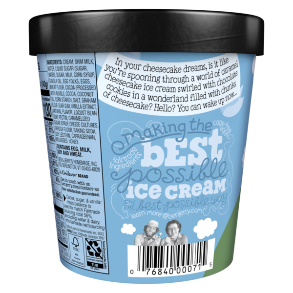 Front of Ice Cream & Ice Ben & Jerry's Caramel Chocolate Cheesecake Ice Cream Pint