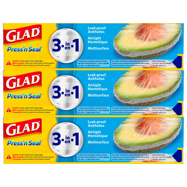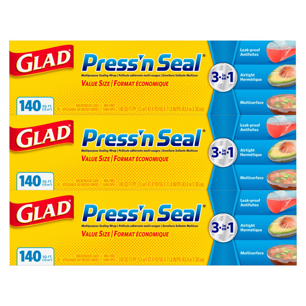 Glad Press'n Seal Plastic Wrap, 140 sq ft, 3-count