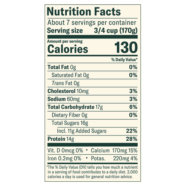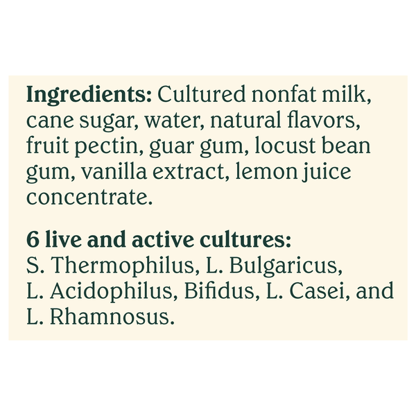Front of Yogurt Chobani Yogurt, Greek, Nonfat, Vanilla
