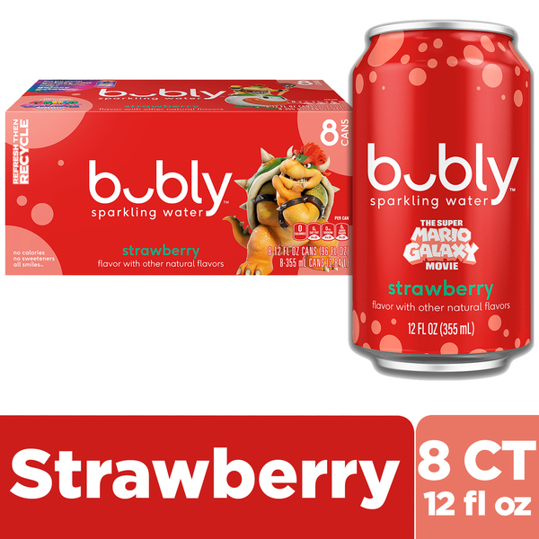 Front of Water, Seltzer & Sparkling Water bubly Bubly Sparkling Water, The Super Mario Galaxy Movie Strawberry, Zero Sugar & Zero Calories,