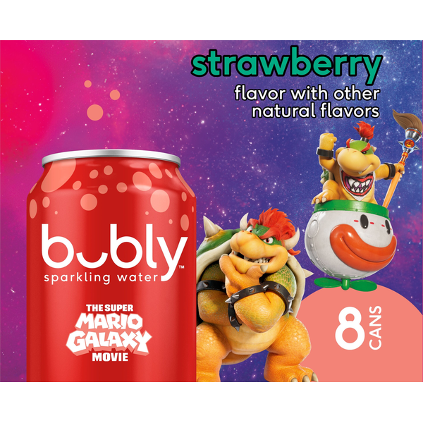 Bubly Sparkling Water, The Super Mario Galaxy Movie Strawberry, Zero Sugar & Zero Calories,