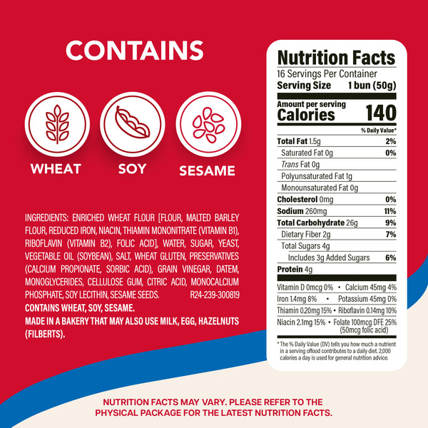 Sara Lee 16 ct, Restaurant Style, Hot Dog Buns, Hot Dog Buns, 28 oz
