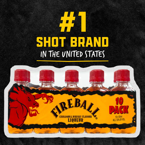 Fireball Cinnamon Whiskey, 50ml Plastic Bottles, 10 Count