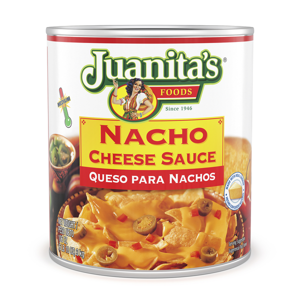 Front of Preserved Dips & Spreads Juanita's Foods Cheese Sauce, Nacho, Medium