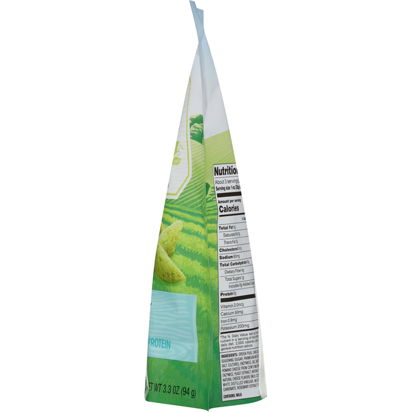 Front of Chips & Pretzels Harvest Snaps Green Pea Snacks, Baked, Caesar