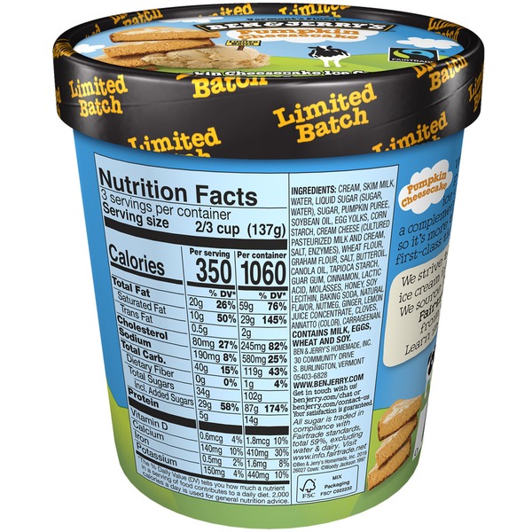 Front of Ice Cream & Ice Ben & Jerry's Ice Cream Pumpkin Cheesecake