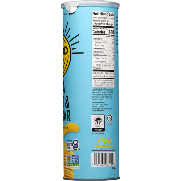 Front of Chips & Pretzels The Good Crisp Company Sea Salt & Vinegar Potato Crisps