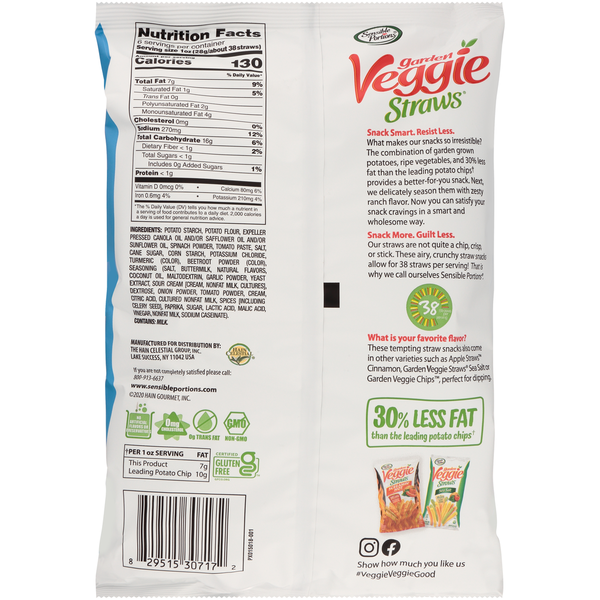 Sensible Portions Garden Veggie Straws Zesty Ranch Vegetable & Potato Snack