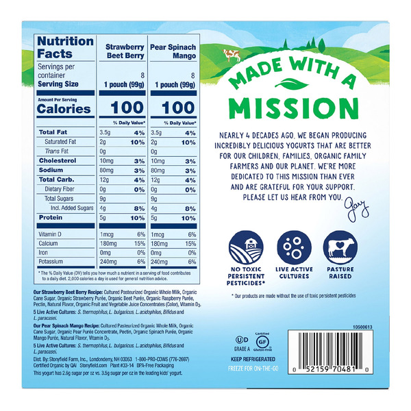 Front of Yogurt Stonyfield Organic Whole Milk Pouch Variety, 16 x 3.5 oz