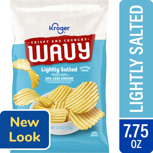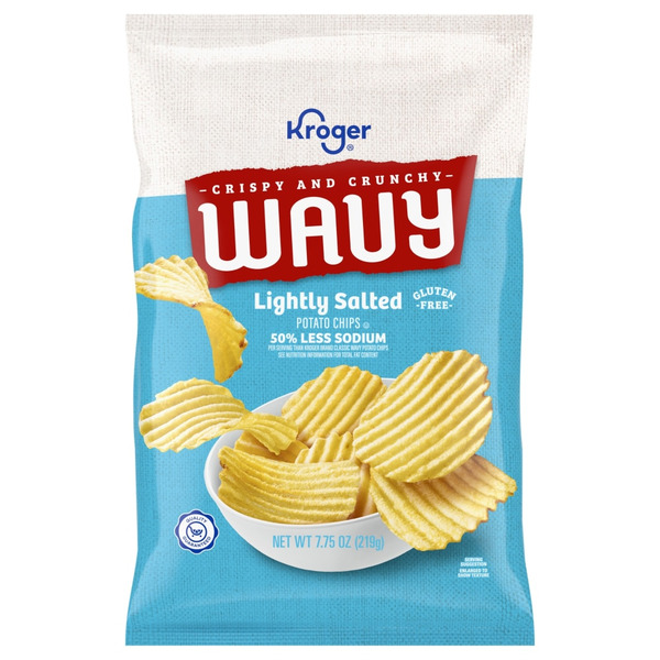 Front of Kroger Potato Chips, Lightly Salted, Wavy