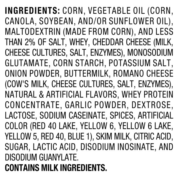 Front of Chips & Pretzels Doritos Flavored Tortilla Chips, Spicy Nacho