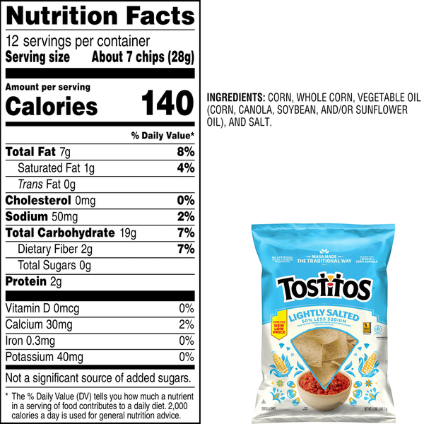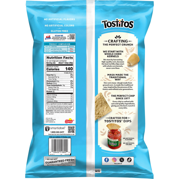 Front of Chips & Pretzels Tostitos Tortilla Chips Lightly Salted