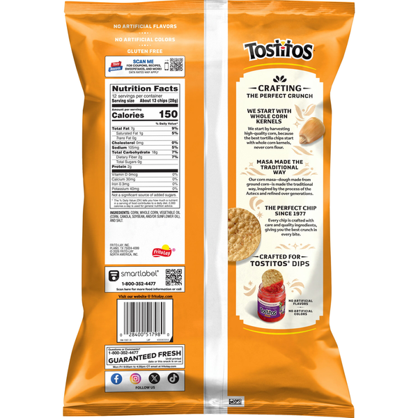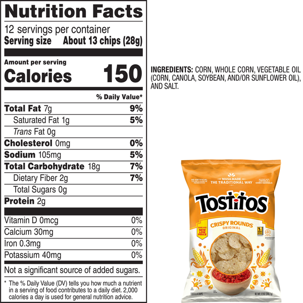 Front of Chips & Pretzels Tostitos Tortilla Chips, Crispy Rounds, Original