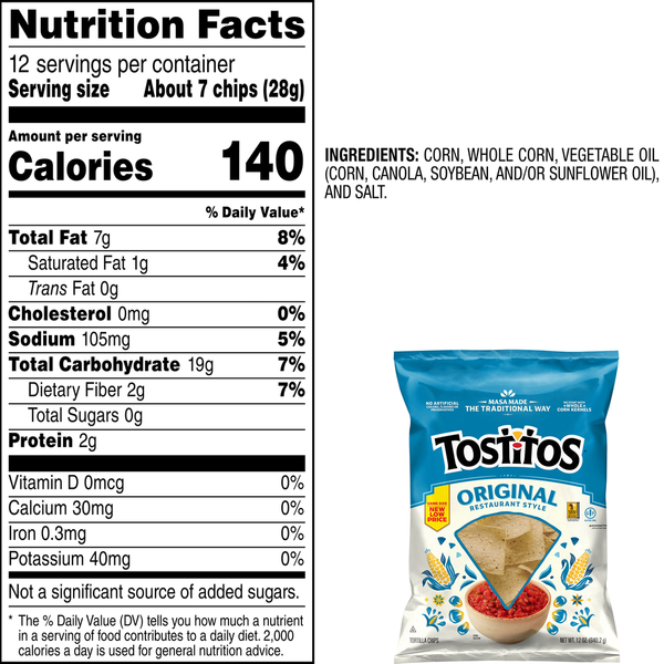 Front of Chips & Pretzels Tostitos Tortilla Chips, Original Restaurant Style