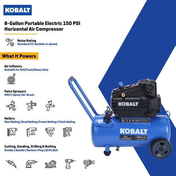 Kobalt 8-Gallon Single Stage Portable Electric Horizontal Air Compressor Rubber
