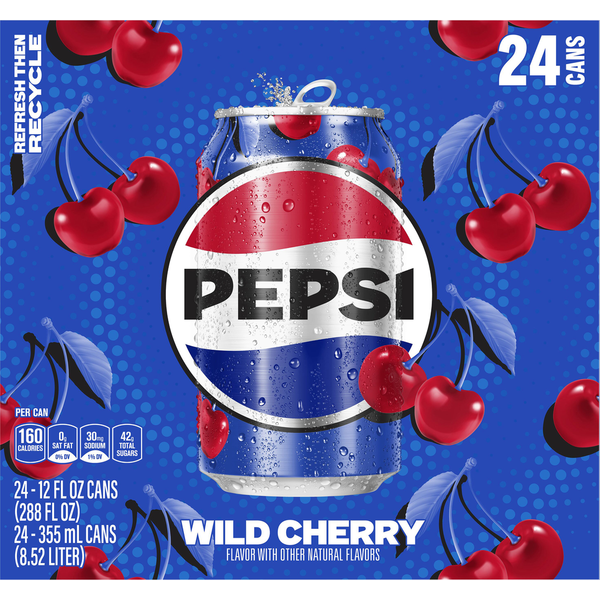 Front of Soft Drinks Pepsi Cola, Wild Cherry