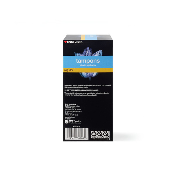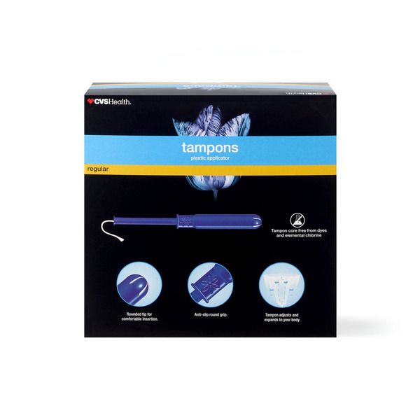 Front of Feminine Care CVS Health Tampons Plastic Applicator Regular Unscented