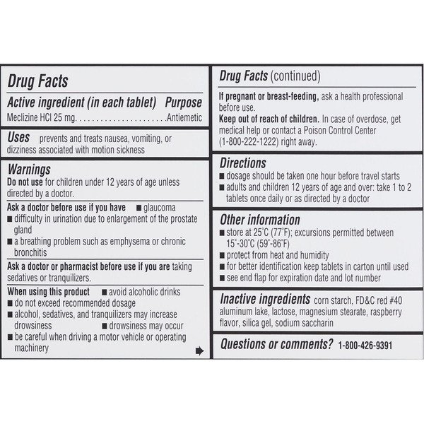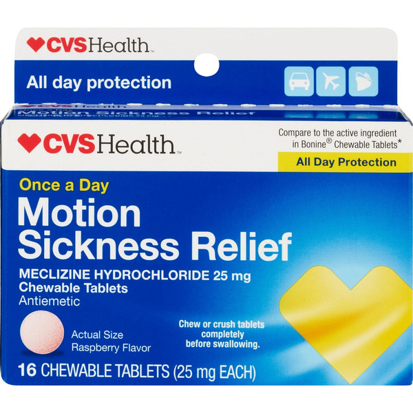 CVS Health Motion Sickness Relief, 25 mg, Raspberry, Chewable Tablets