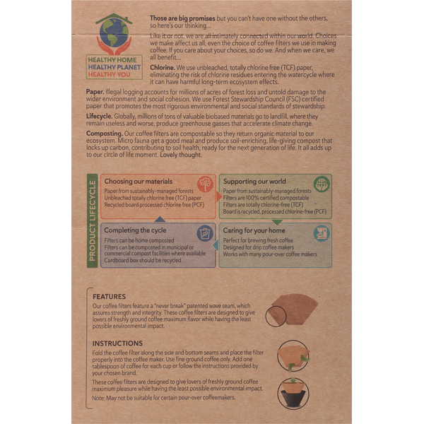 Front of Coffee If You Care FSC Certified Unbleached Totally Chlorine-Free No. 4 Size Coffee Filters