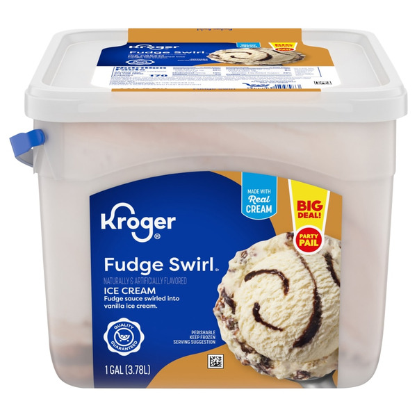 Front of Ice Cream & Ice Kroger Deluxe Fudge Swirl Ice Cream