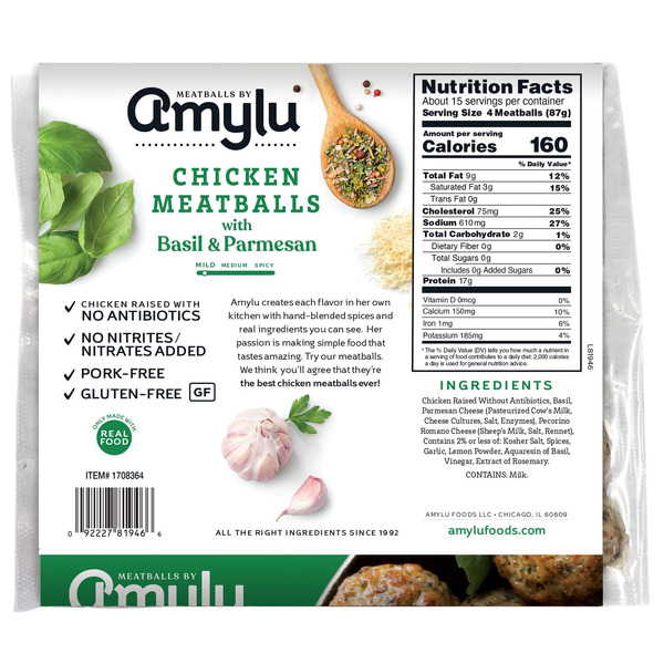 Amylu Chicken Meatballs Basil & Parmesan, 46 oz