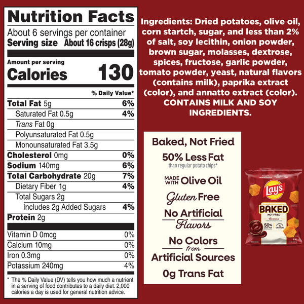 Lay's Baked Potato Crisps, Barbecue Flavored