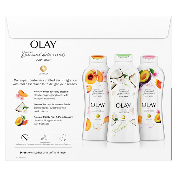 Front of Body Lotions & Soap Olay Olay Essental Botanicals Body Wash, 23.6 fl oz, 3 count