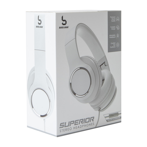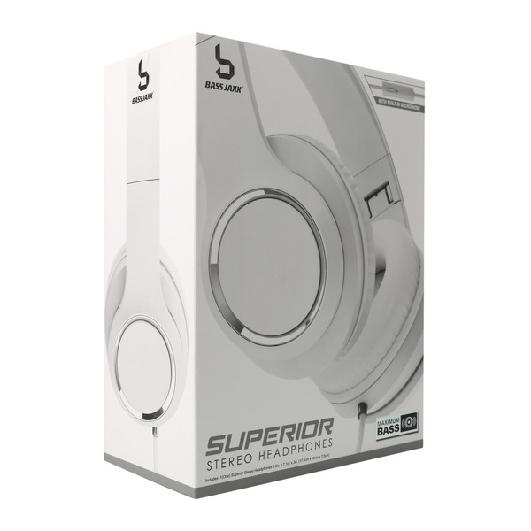 Front of headphones & earbuds Bass Jaxx Superior Stereo Wired Headphones With Mic - White