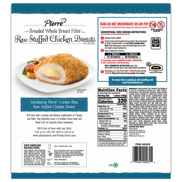 Pierre Raw Stuffed Chicken Breasts, Cordon Bleu, 6-count