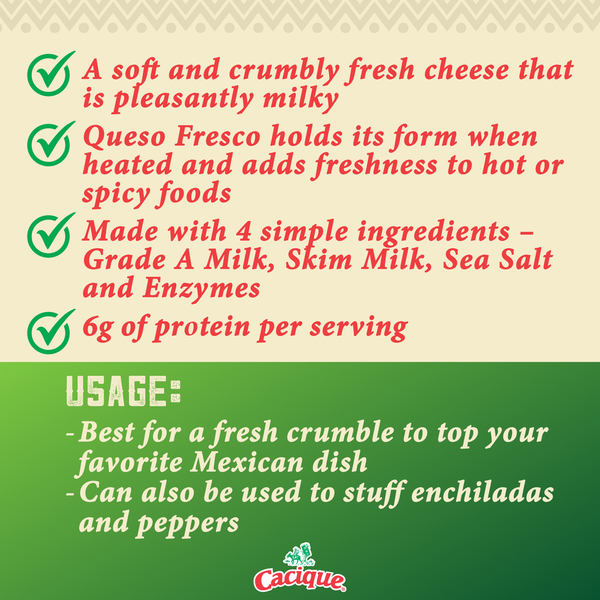 Front of Cacique Queso Fresco Part Skim Milk Cheese