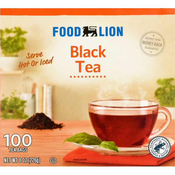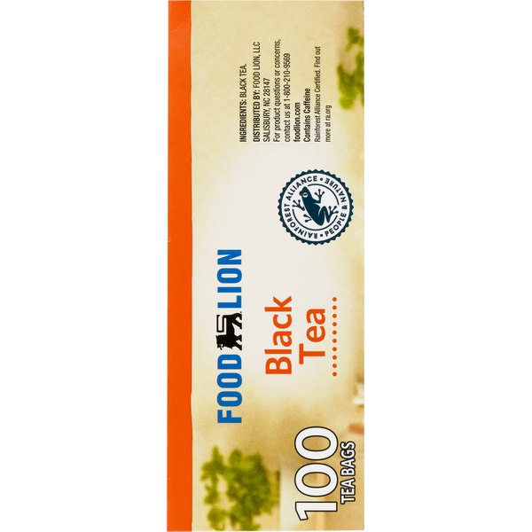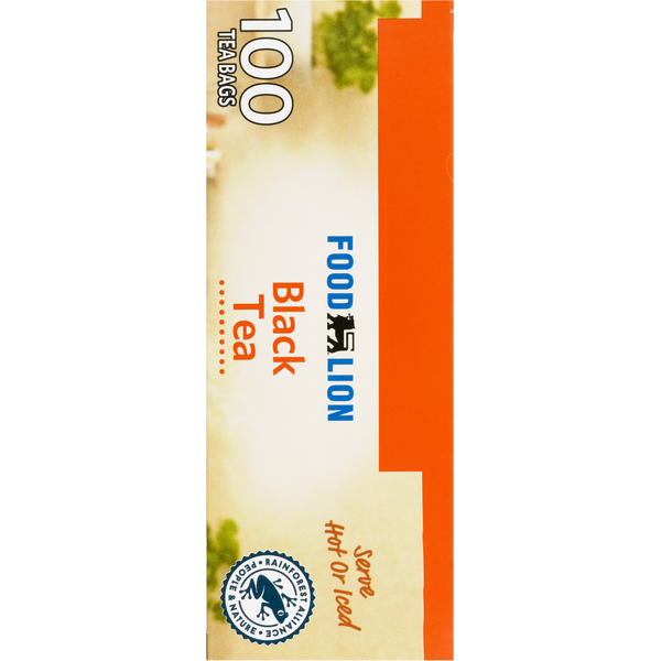 Front of Tea Food Lion Tea Bags Orange Pekoe & Pekoe Cut Black Tea 100ct