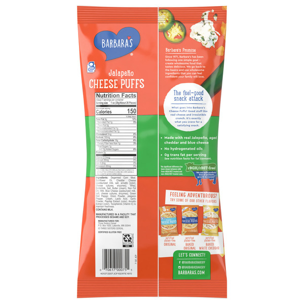 Barbara's Cheese Puffs Gluten Free Kids Snacks, Real Aged Cheese