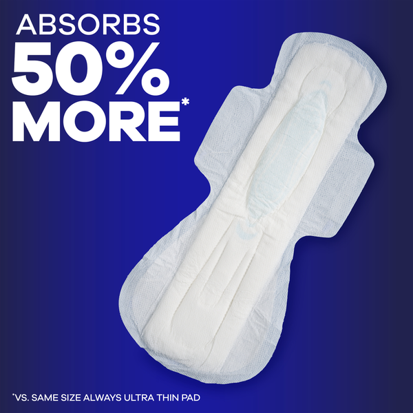 Front of Maxi Pads Always Maxi Extra Heavy Overnight Towel Pads