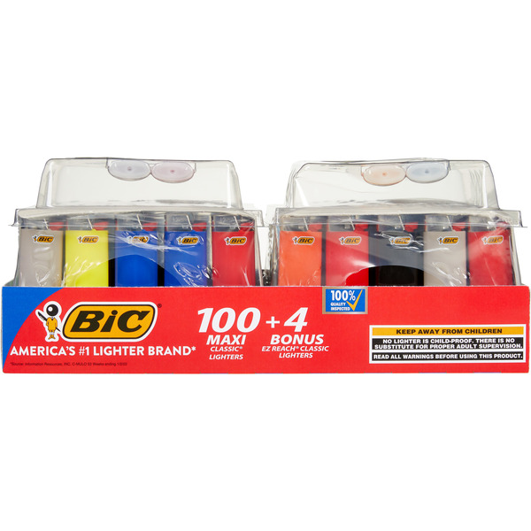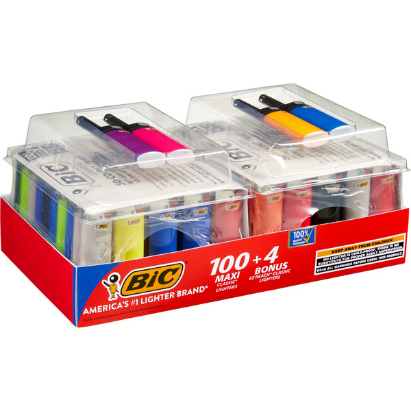 BIC Maxi Classic Lighters, 100 ct + 4 Bonus EZ Reach Classic Lighters
